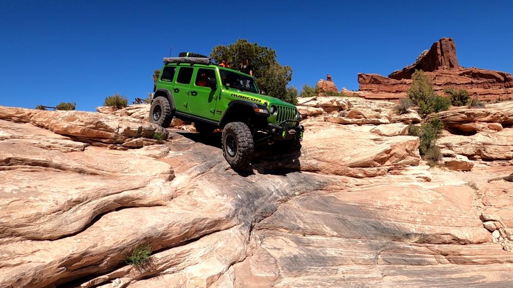 The Seven Mile Rim trail leaves Highway 191 just north of Highway 313, about 11 miles north of town. It passes the old Cotter uranium mine and switches back to reach the cliff rim above the mine and Highway 191. The intense mining activity left a maze of core-drilling roads on the mesa top, and the trail seeks the most interesting of these. It travels south near the cliff rim above Highway 191 before turning west above Seven Mile Canyon, which carries Highway 313. Along the way, Uranium Arch will be visited. The trail joins other roads in the vicinity of Merrimac Butte, Monitor Butte, Determination Towers, and Big Mesa. Most of the trail is easy but has an optional climb near Uranium Arch and a sandy hill near the end that is sometimes full of holes. A sidehill slickrock portion around the south side of Merrimac Butte may be intimidating to the “scaredy-cats” (which includes most of us), but all of us have completed it unscathed. Wounded or tired vehicles can bypass the worst obstacles, but the bypasses are often a long way around. Trail description courtesy of Red Rock 4 Wheelers.